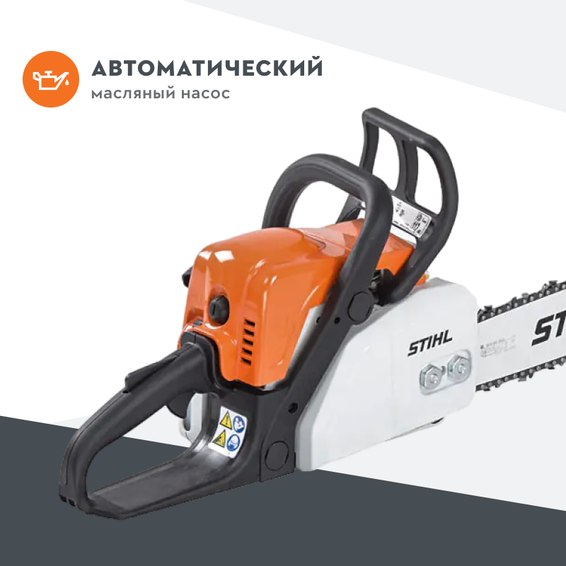 - У STIHL MS 182 - 35,8 кубических сантиметров и 1,6 кВт (примерно 2,2 лошадиных силы).
