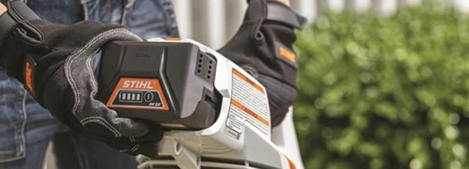 Для транспортировки и хранения воздуходувки Stihl BGA 57 предусмотрено промежуточное положение батареи. Это значит, что ее можно вставить в корпус без подключения к контактам.