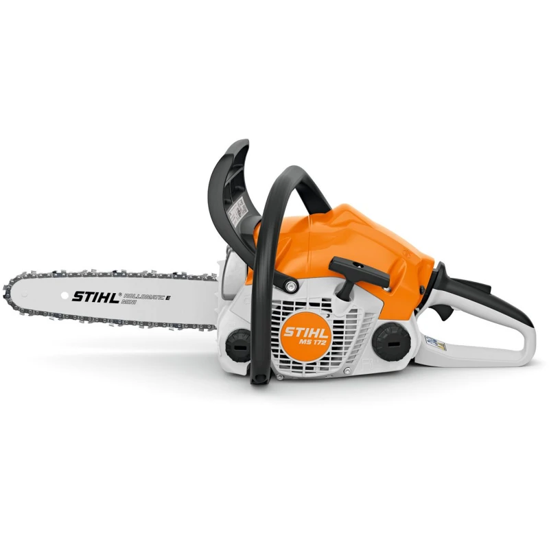 Бензопила STIHL MS 172 пригодится в хозяйстве для распиловки древесины разной твердости, заготовки дров, ухода за садом и строительных работ. Двухтактный двигатель мощностью 1,9 л.с. отличается высокой производительностью и экономным расходом топлива. Пильная шина длиной 35 см позволяет делать глубокие резы и валить небольшие деревья. С инструментом комфортно работать благодаря однорычажному управлению и эффективной системе снижения вибрации.
